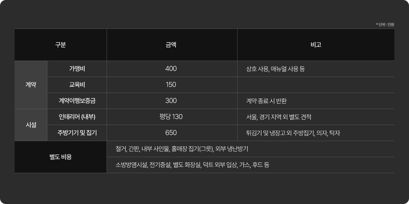 점주님들의 초기 부담을 줄여드릴